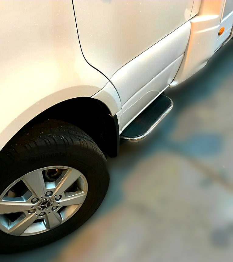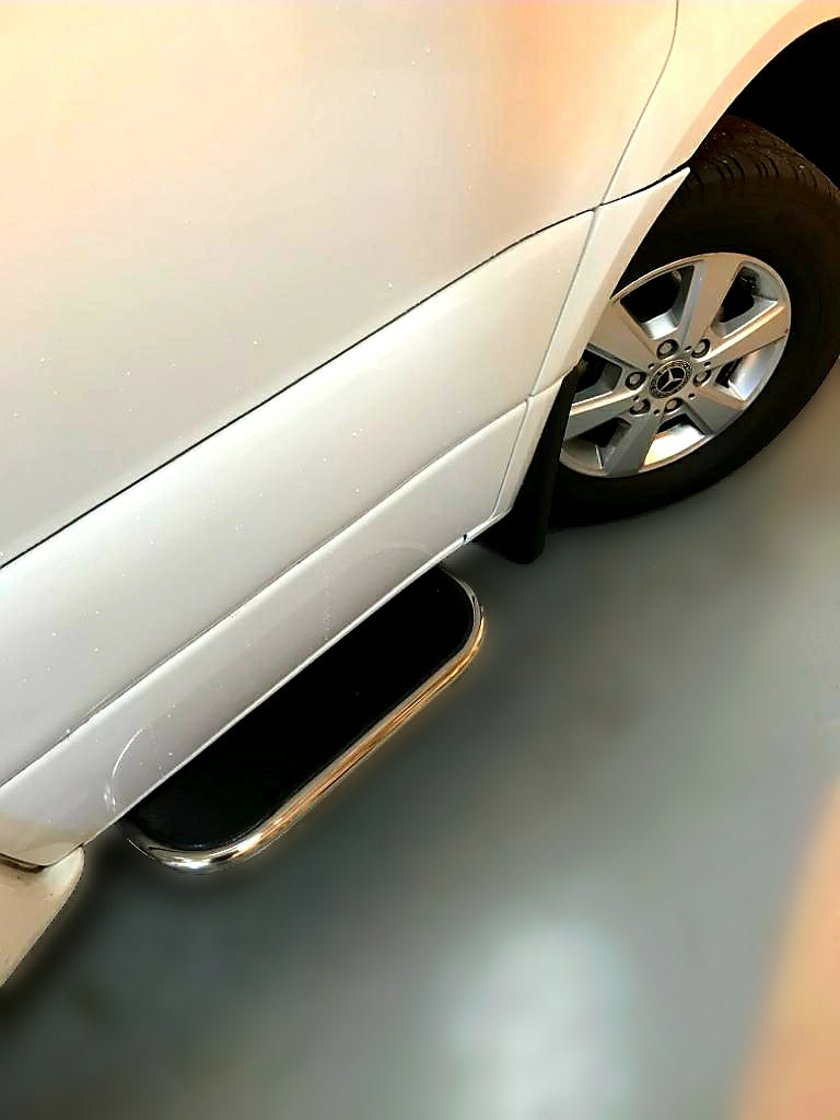 Made exclusively by Essanjay Limited to order. Bespoke stainless steel cab side steps to help you get into the cab with ease. Extremely strong and durable. Designed to fit your make and model specifically.