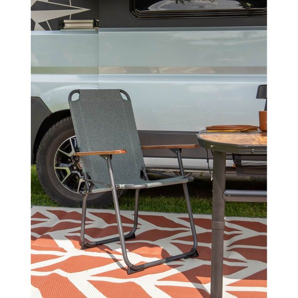 A classic and very compact folding chair with a modern industrial look. A chair that combines style, comfort and functionality. Equipped with a Cationic upholstery, a lightweight aluminium frame and bamboo armrests. An ideal chair for the garden or camping, but also on the balcony and in the living room. In addition, this chair is equipped with extra stabilizers and a 'safety-lock' against unwanted folding. Compact to take with you.