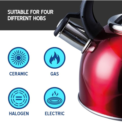 The kettle emits a pleasing whistling sound when the water reaches a boil. perfectly created and easy to use, simply fill the kettle to just below the spout opening, replace the lid and place on medium heat on stovetop. once it starts whistling, the water is ready and the kettle can be removed from heat