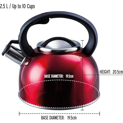 • The liberty whistling tea kettle will boil 2.5l of water, enough to make 10 cups of tea from one teapot